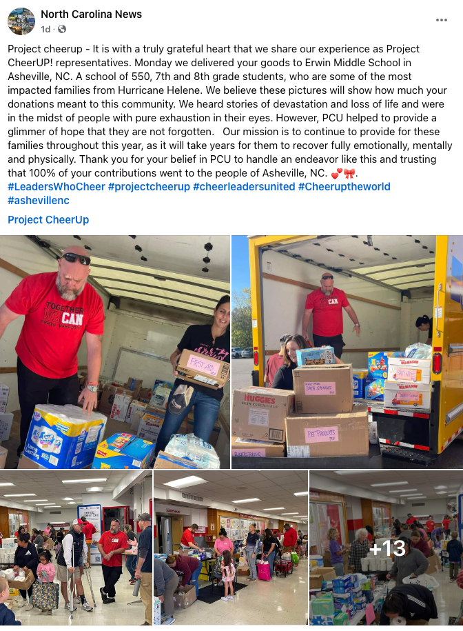 April 25, 2020 - As Project CheerUP! enters its second month, the group's founders, Cedar Grove High School cheerleaders Mackenzie Jennings, Ava Cassilli, Alessia Velazquez and Sofia Cordaro, continue to build upon their mission of showing others that “some days you just have to create your own sparkle and shine.” Project CheerUP! Is a virtual and safe way to use cheerleading skills to provide a service to anyone in need of “cheering up” during the social distancing protocol in place due to COVID-19. Read more.